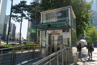 <地下鉄駅入口のエレベーター >